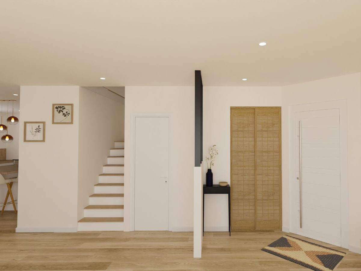Agencement et décoration des espaces : entrée, escalier, salon, cuisine et salle à manger !
