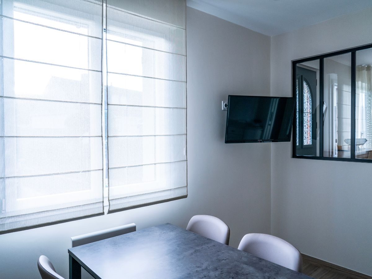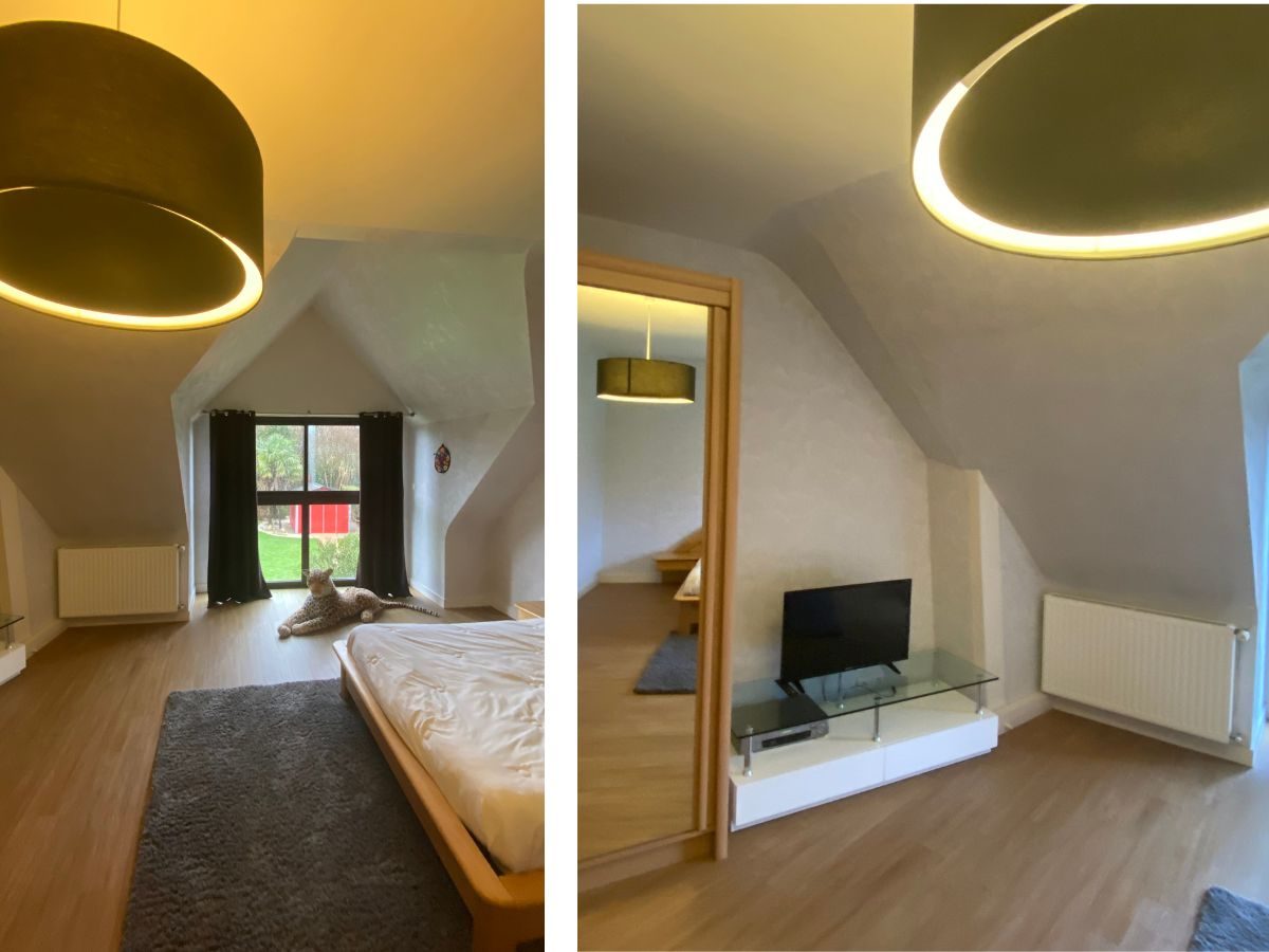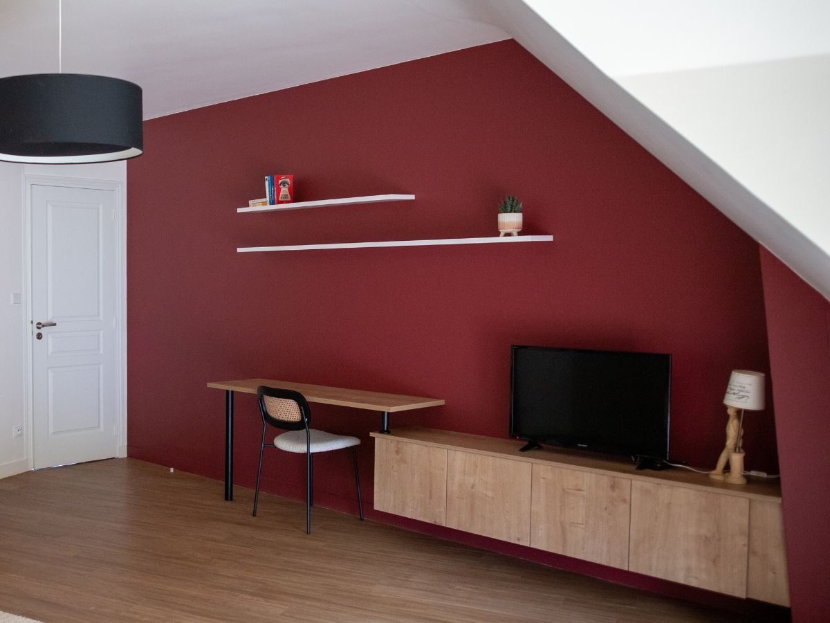 Chaque chambre a été repensée, redécorée, rafraîchie et ré aménagée soit avec de nouvelles teintes couleurs , de la matière et du relief sur les pans de murs, de l’agencement sur mesure mais aussi avec du mobilier, luminaire, tapis, rideau, store …