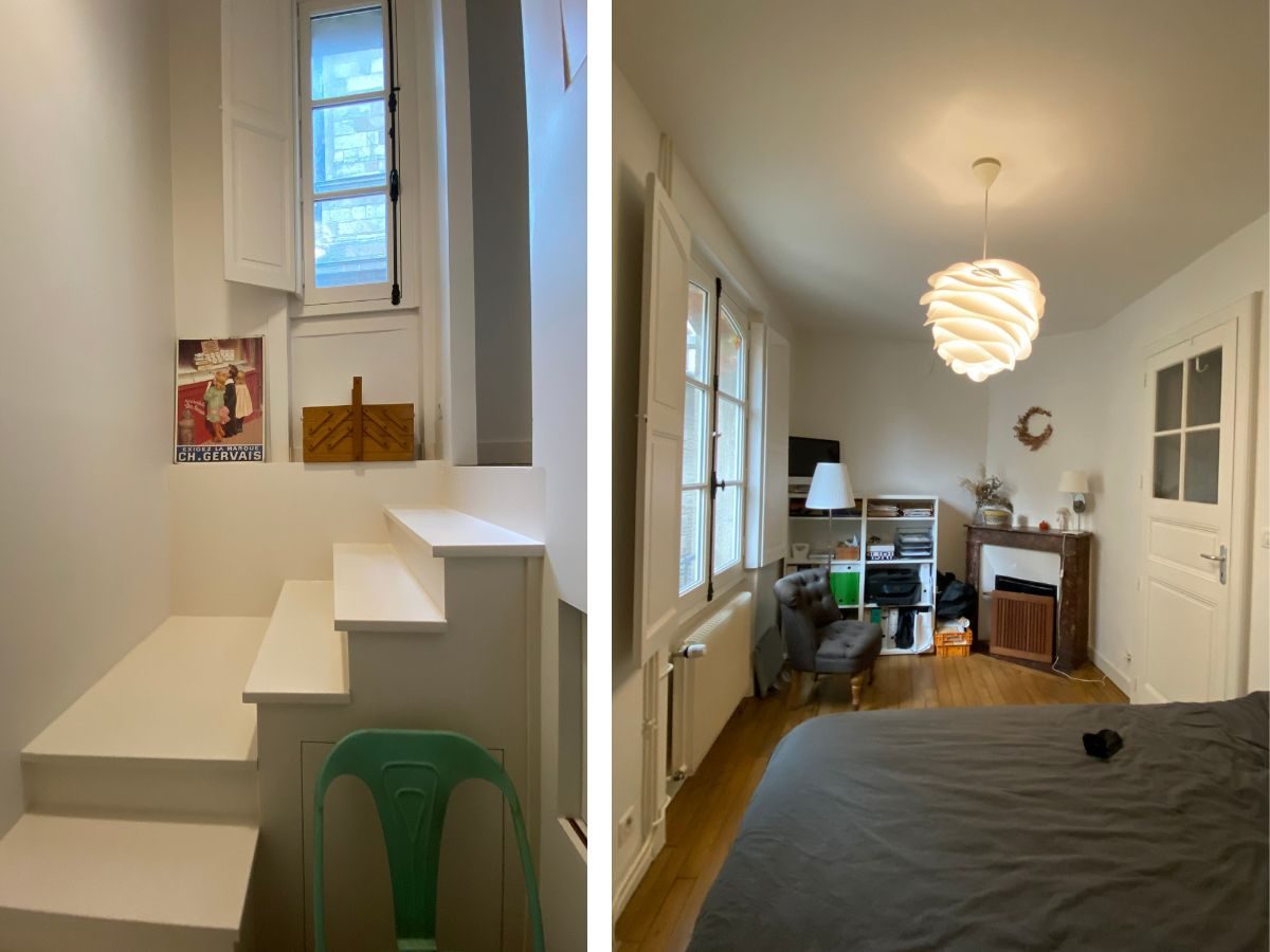 Tout en conservant certains éléments d’origines notamment les literies, tables de chevets et armoire qui pour certains seront probablement relookés dans un second temps.