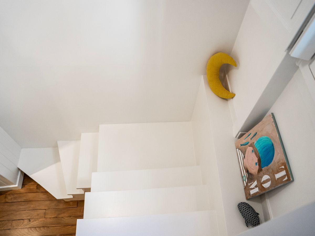 Ambiance et décoration aux tons pastels et doux avec quelques touches contemporaines , travail sur la luminosité des espaces tout en apportant un nouveau look aux mobiliers existants, escaliers !!