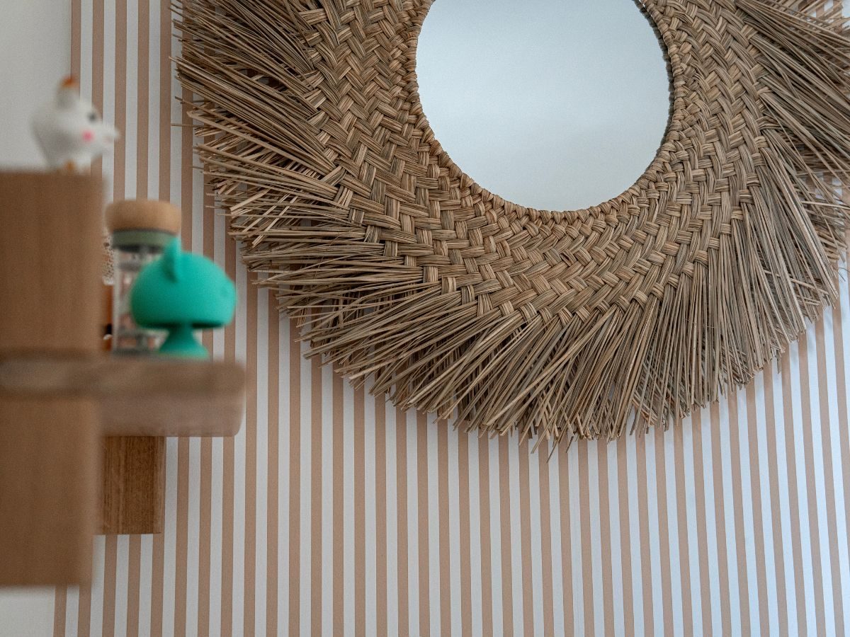 Décoration aux tons pastels et lumineux (pan de mur dans un blanc pur scandinave, papier peint de chez Isidore Leroy ….).
