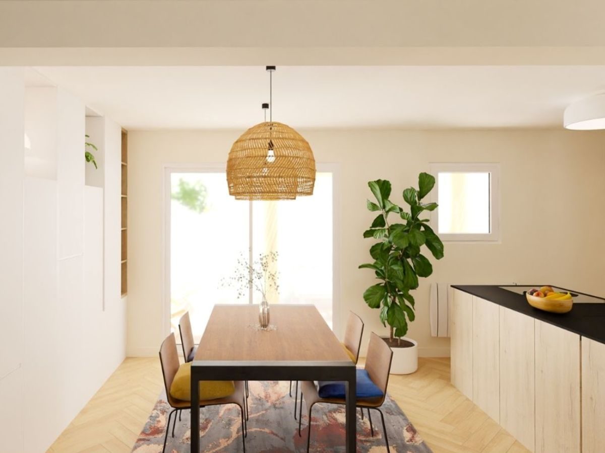 Agencement & décoration, luminosité, optimisation des différents espaces : entrée, salon-séjour, bureau, salle à manger, relooking de la cuisine et de l’escalier.