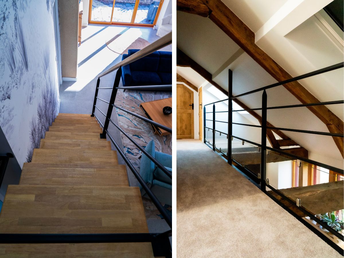 New look pour l’escalier , avec marche en bois et contre-marche blanche !