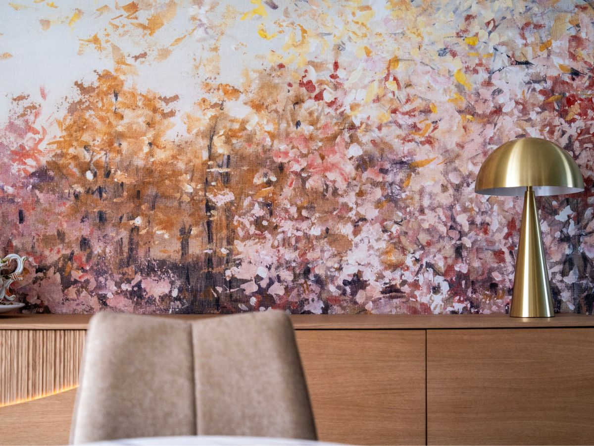 Ambiance douce et chaleureuse avec ce joli papier peint panoramique intissé de chez Rebel Walls !